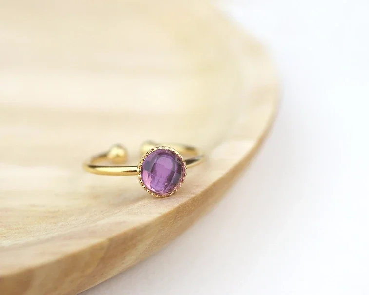Bague minimaliste plaqué or 18k - Améthyste - Calme et Sagesse