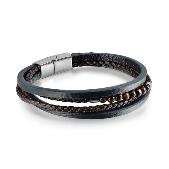 Bracelet cuir et pierres naturelles (modèle 2) - Oeil de Taureau - pour Homme