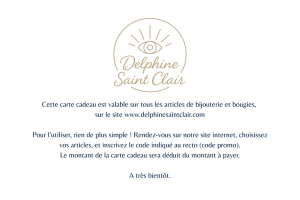 Valable sur tous les articles de bijouterie et bougies, laissez le libre choix à la personne qui reçoit cette carte.